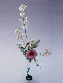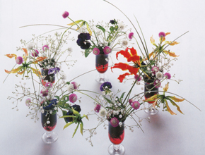 生活空間に生かせる基本のかたちである「たてるかたち」「かたむけるかたち」を学び、花の組み合わせやバランスのとりかたなども学びます。