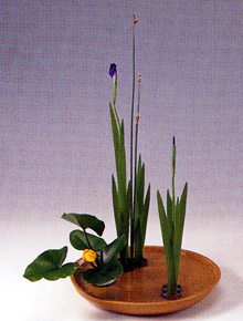 小原流の花 春夏秋冬、日本の国は四季の変化がはっきりしています。だからこそ日本のいけばな文化は生まれ発展してきたともいえます。 小原流のいけばなの表現方法のひとつに「写景盛花(しゃけいもりばな)」というものがあります。自然の風致景観を水盤などの器に表現するいけばなです。 四季おりおりの花材をつかい景観美を表現する「写景盛花」は小原流独自の素晴らしい表現法のひとつです。