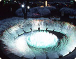 霞ヶ関ビルの前庭へのインスタレーション1991年12月 からたち、アクリル棒、光グラスファイバー |